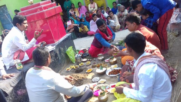 कहुआरा में हुआ शतचंडी यज्ञ का ध्वजारोण, मंत्रोच्चार से गूंजा गांव
