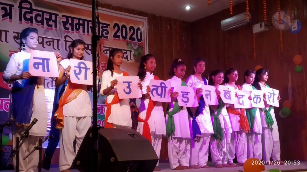 कस्तुरबा विद्यालय गोविंदपुर की छात्राओं द्वारा सलाम इंडिया पर नृत्य प्रस्तुत किया। वहीं कायनात असमत ने मेरा मूल्क मेरा देश मेरा ये वेतन, शैल्य ने मेरा रंग दे बसंती चोला, कस्तूरबा विद्यालय रजौली द्वारा एक पानी बिन मरल धान पर समूह नृत्य,नारदीगंज द्वारा जीना है तो पापा शराब मत पीना, डौली शर्मा एवं सबीना राज द्वारा लोकगीत देशवा के देलहू वरदान मैया भारती एवं अनुराधा कुमारी ने मेरे सिर पर रख दो बाबा भक्ति गीत गाई। सांस्कृतिक कार्यक्रम का मंच संचालन श्रवण कुमार बरनवाल एवं विजय शंकर पाठक ने किया तथा सहयोगी शिव कुमार प्रसाद रहे।