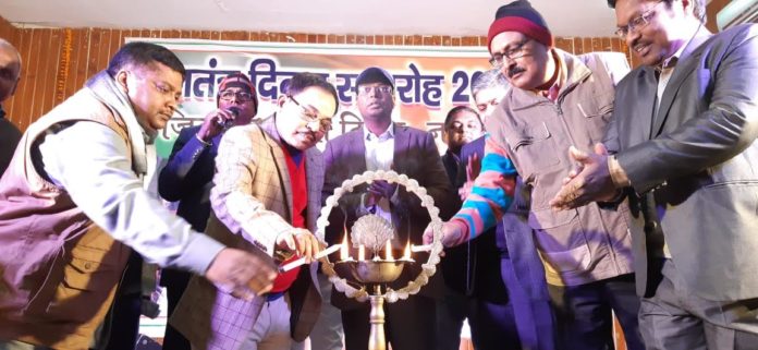 नवादा 71 वें गणतंत्र एवं जिला स्थापना दिवस के मौके पर जिला प्रशासन द्वारा टाउन हाॅल में सांस्कृतिक कार्यक्रम का आयोजित किया गया। कार्यक्रम शुरू होने से पूर्व जिला पदाधिकारी कौशल कुमार, अपर समाहर्ता ओमप्रकाश, डीपीआरओ गुप्तेश्वर कुमार, नगर पंचायत के कार्यपालक पदाधिकारी देवेन्द्र सुमन ने कार्यक्रम का विधिवत उद्घाटन किया।